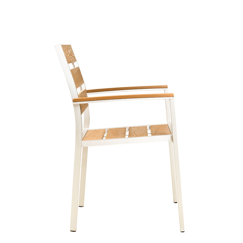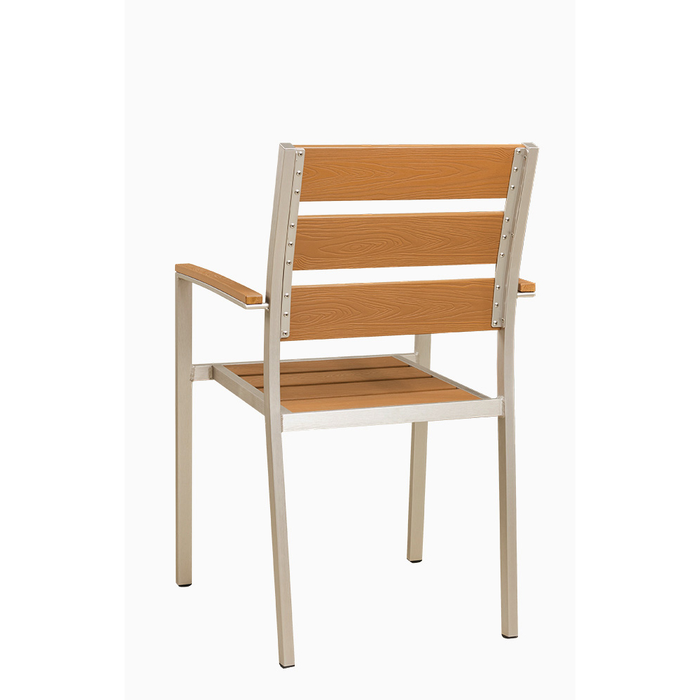 Wetterfester Gastronomiestuhl mit stilvoller Holzoptik für den Outdoor-Bereich