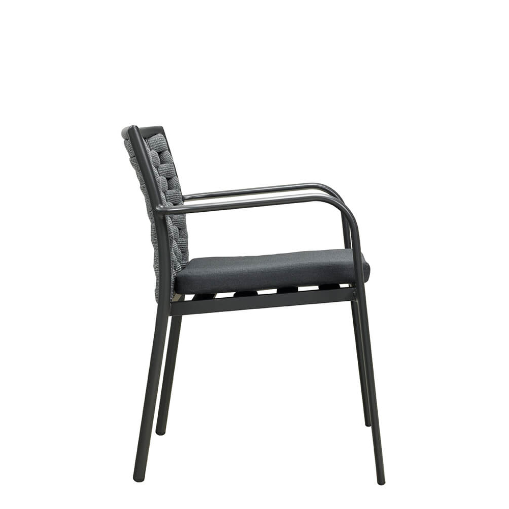 Der Terrassenstuhl Bentio Grey wurde für den dauerhaften Einsatz unter freiem Himmel konzipiert. Das robuste Aluminiumgestell widersteht Korrosion, während das hochwertige Rope-Geflecht auch bei intensiver Sonneneinstrahlung formstabil bleibt. Eine gute Wahl für den täglichen Betrieb mit hoher Frequenz – widerstandsfähig gegen Witterungseinflüsse und mechanische Beanspruchung.