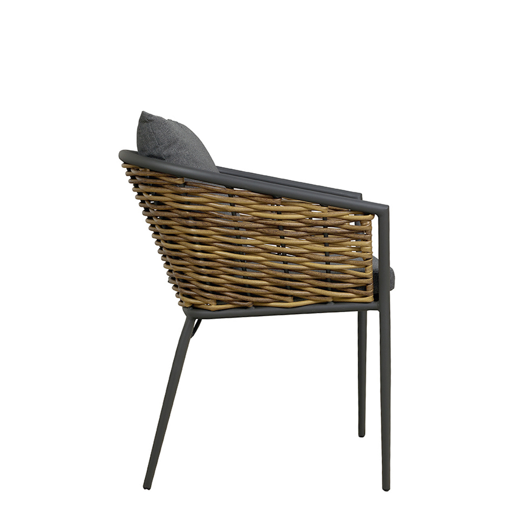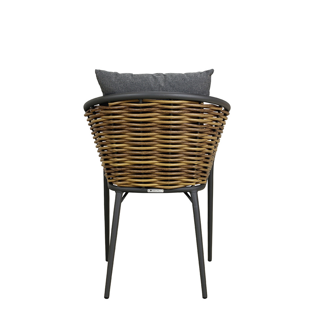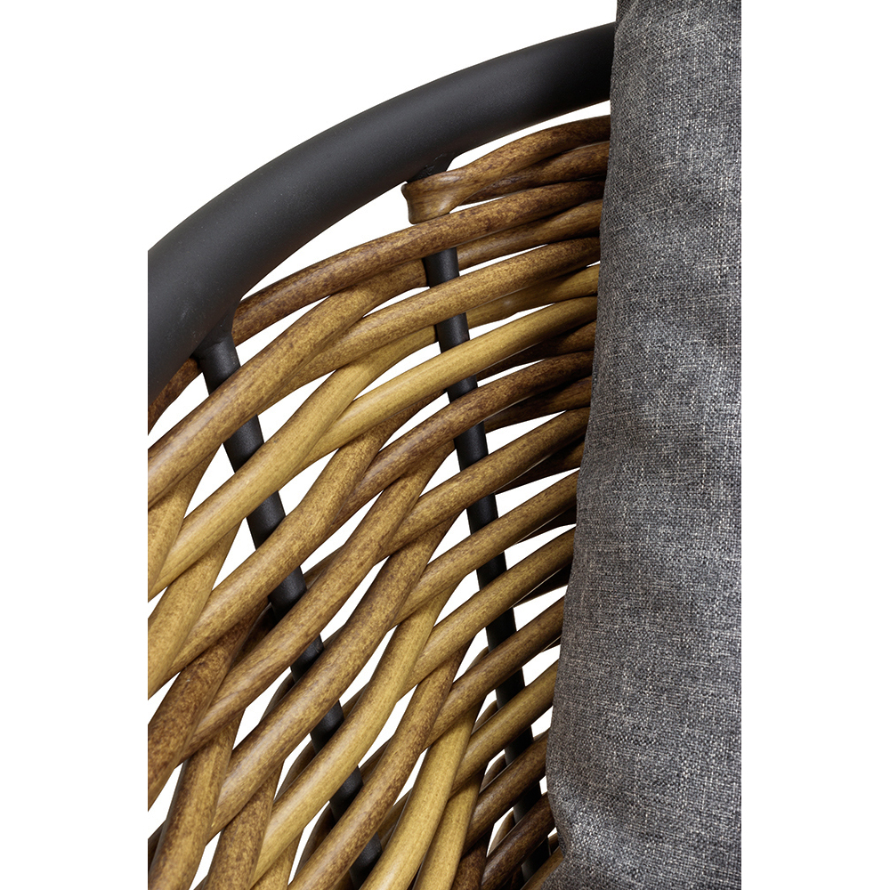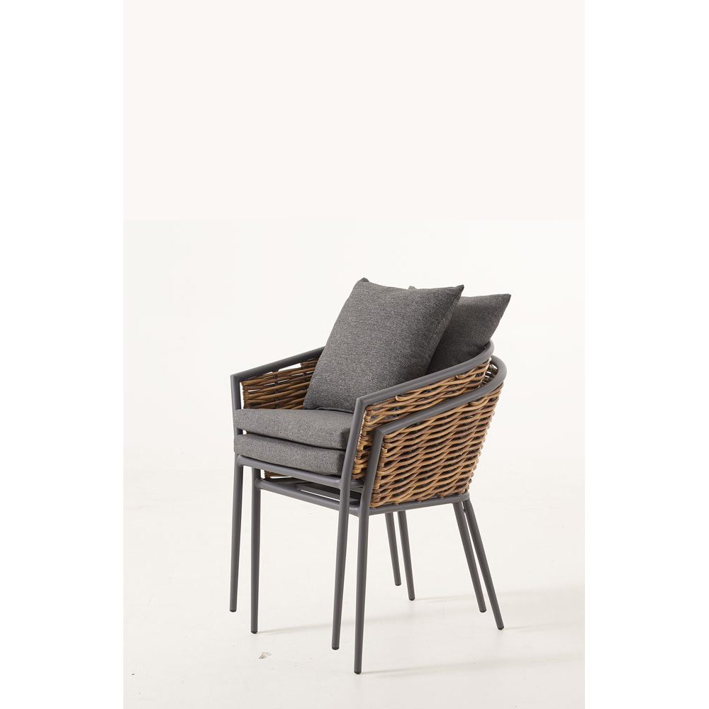 - Besonderheiten: Natürliche Rattanoptik, stapelbar, inklusive Rückenkissen