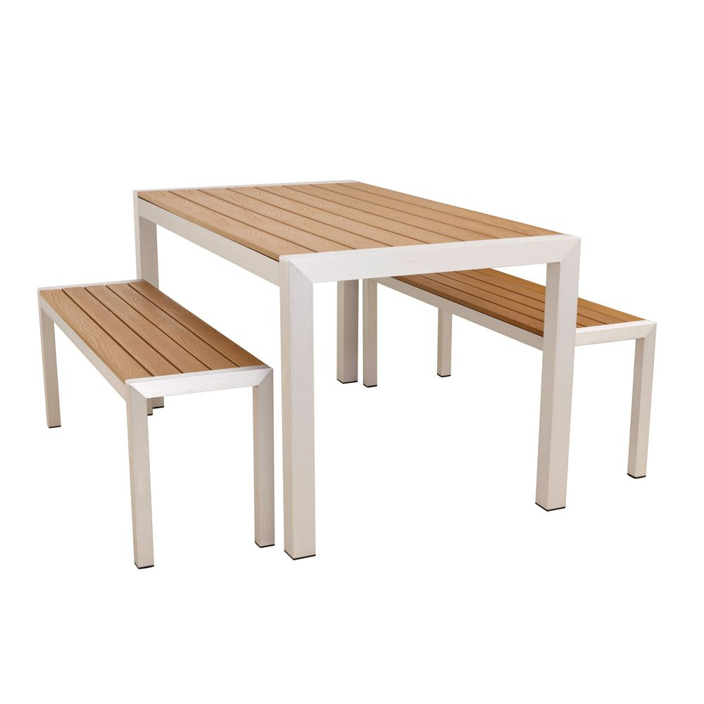 Die SINORA-Bank mit Polywood-Lattung eignet sich speziell für den Außenbereich.