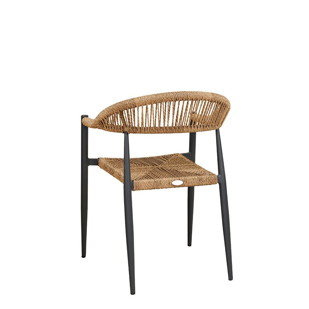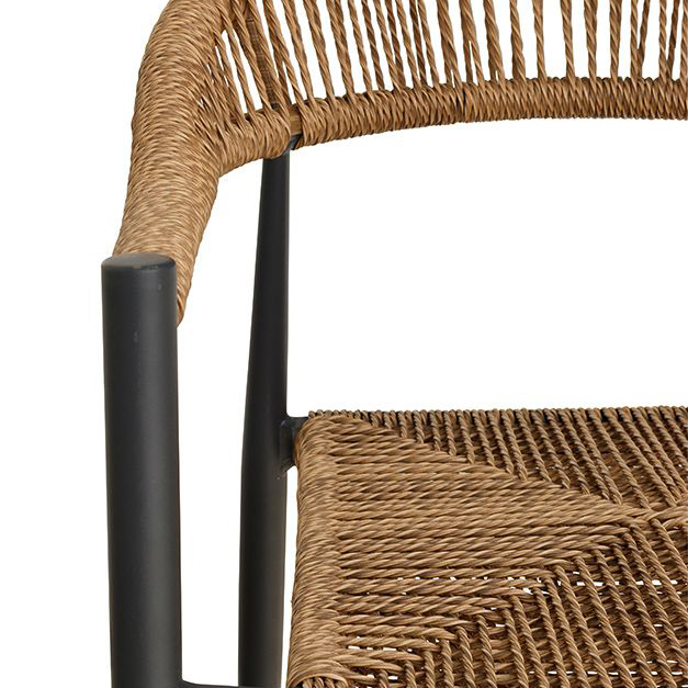 - Pflegeleichtes, UV-beständiges Geflecht (Kunststoff/Rope) an Sitz und Rücken