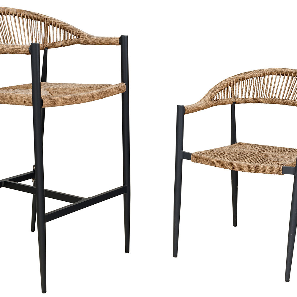 - Sitz- und Rückenfläche aus gedrehtem Kunststoffgeflecht