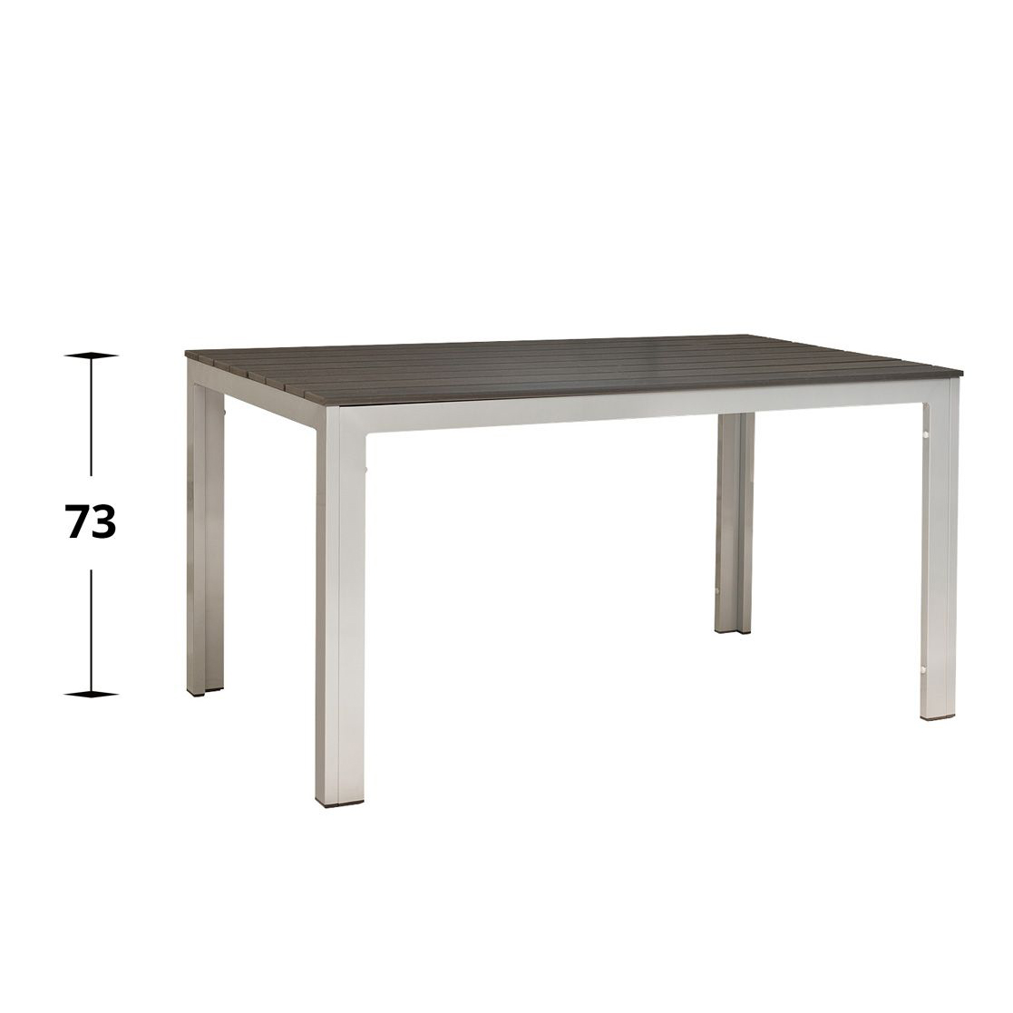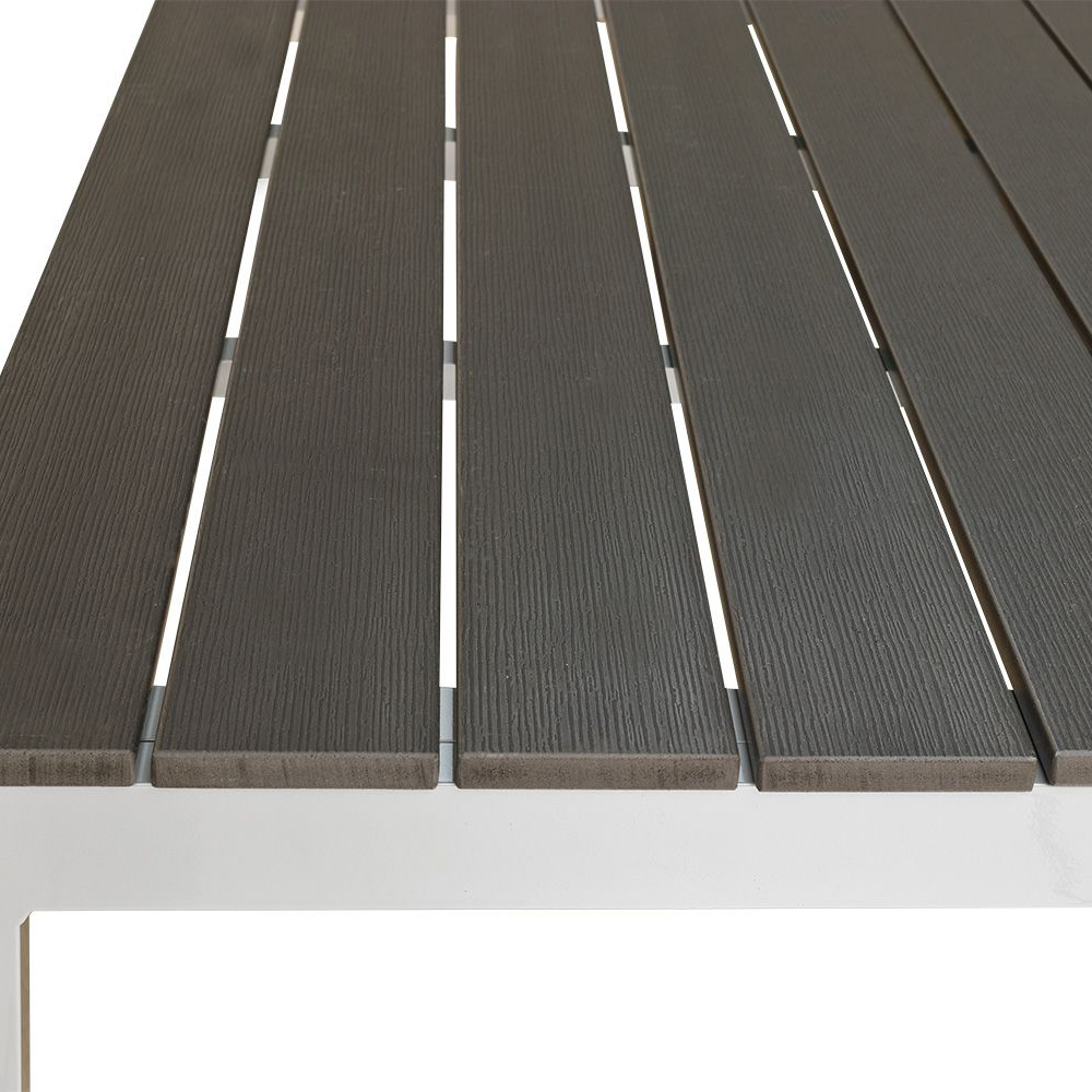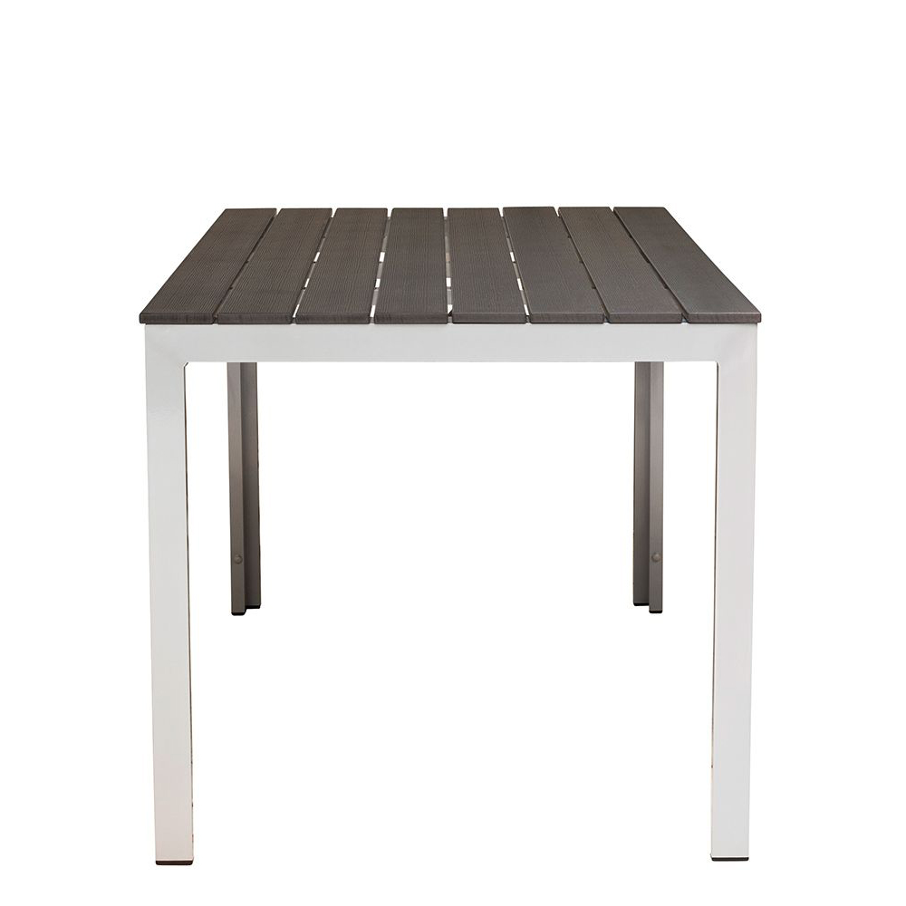 Der Tisch mit Polywood-Lattung eignet sich speziell für den Außenbereich.