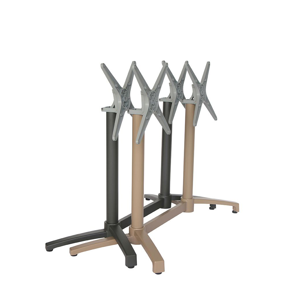 Das Tischgestell hat eine Klappfunktion und einen herausnehmbaren Gewichtseinsatz für mehr Stabilität.