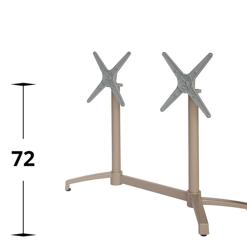Das Tischgestell hat eine Klappfunktion und einen herausnehmbaren Gewichtseinsatz für mehr Stabilität.