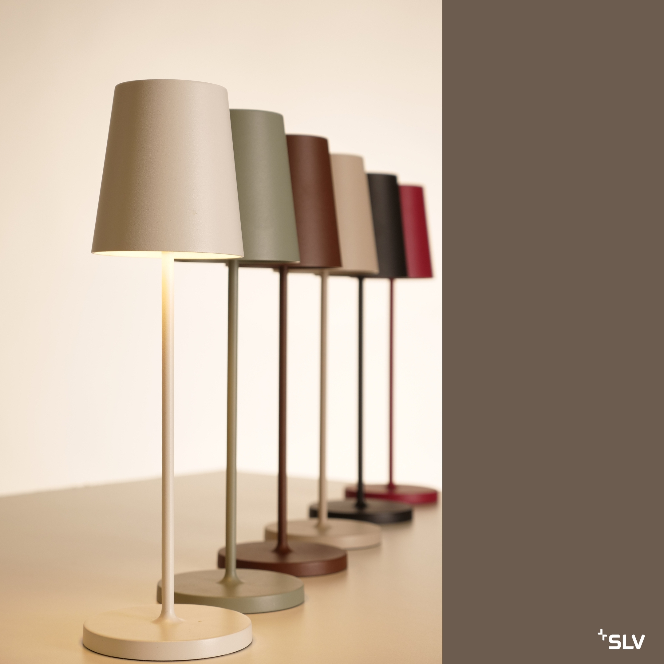 VINOLINA TWO heißt die hochwertig aus Aluminium gefertigte Tischleuchte, die sich dank Schutzart IP65 auch nach draußen mitnehmen lässt. In ihrem zeitlosen Design verströmt sie mit einer einzigen Akkuladung 10 Stunden ein nach oben und unten gerichtetes Licht, dessen Farbtemperatur via CCT-Switch einstellbar ist (2200K/2700K/3000K). Dabei ist die mobile Leuchte in sechs verschiedenen Trendfarben erhältlich. Die Ladestation ist mitsamt USB-Kabel im Lieferumfang enthalten. Erleben Sie mit VINOLINA TWO eine elegante Lösung in Sachen Licht, die via Touchschalter noch dimmbar ist.