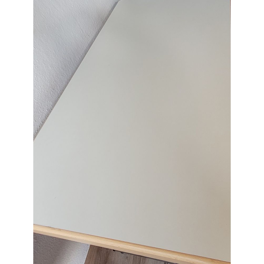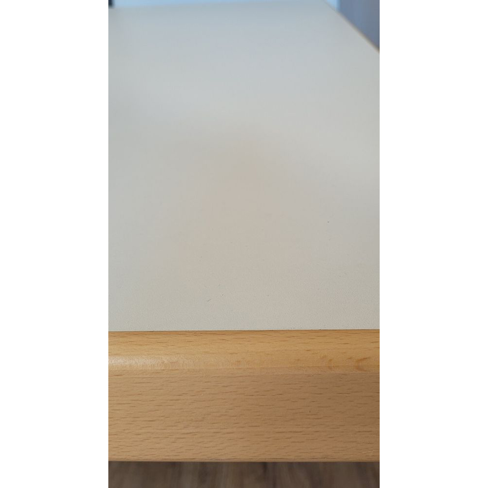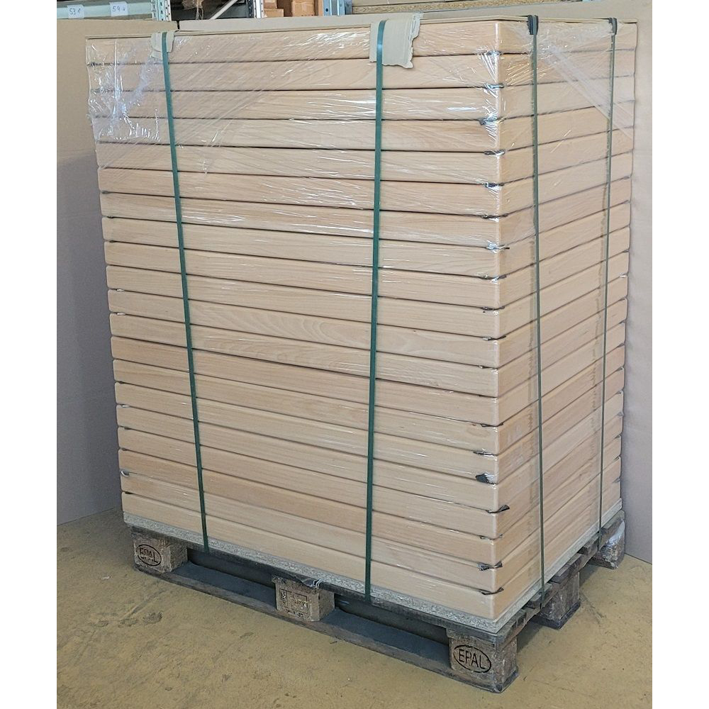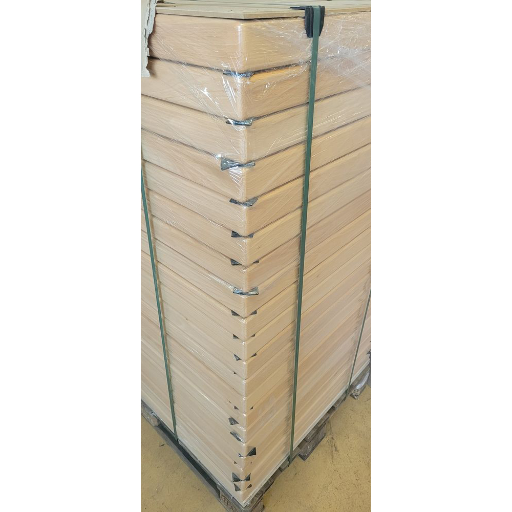 Melaminharz-Tischplatte in 25mm mit einer Massiv-Buchholz-Aufdopplung am Rand auf 65 mm