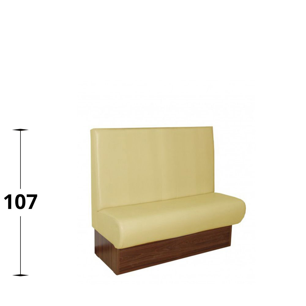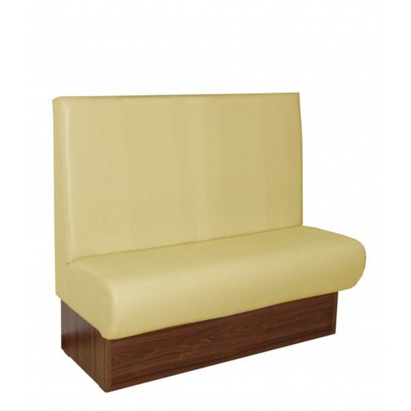 Eine Polsterbank mit flachen Rücken und Sockel, diese Loungebank ist für die Gastronomie geeignet.