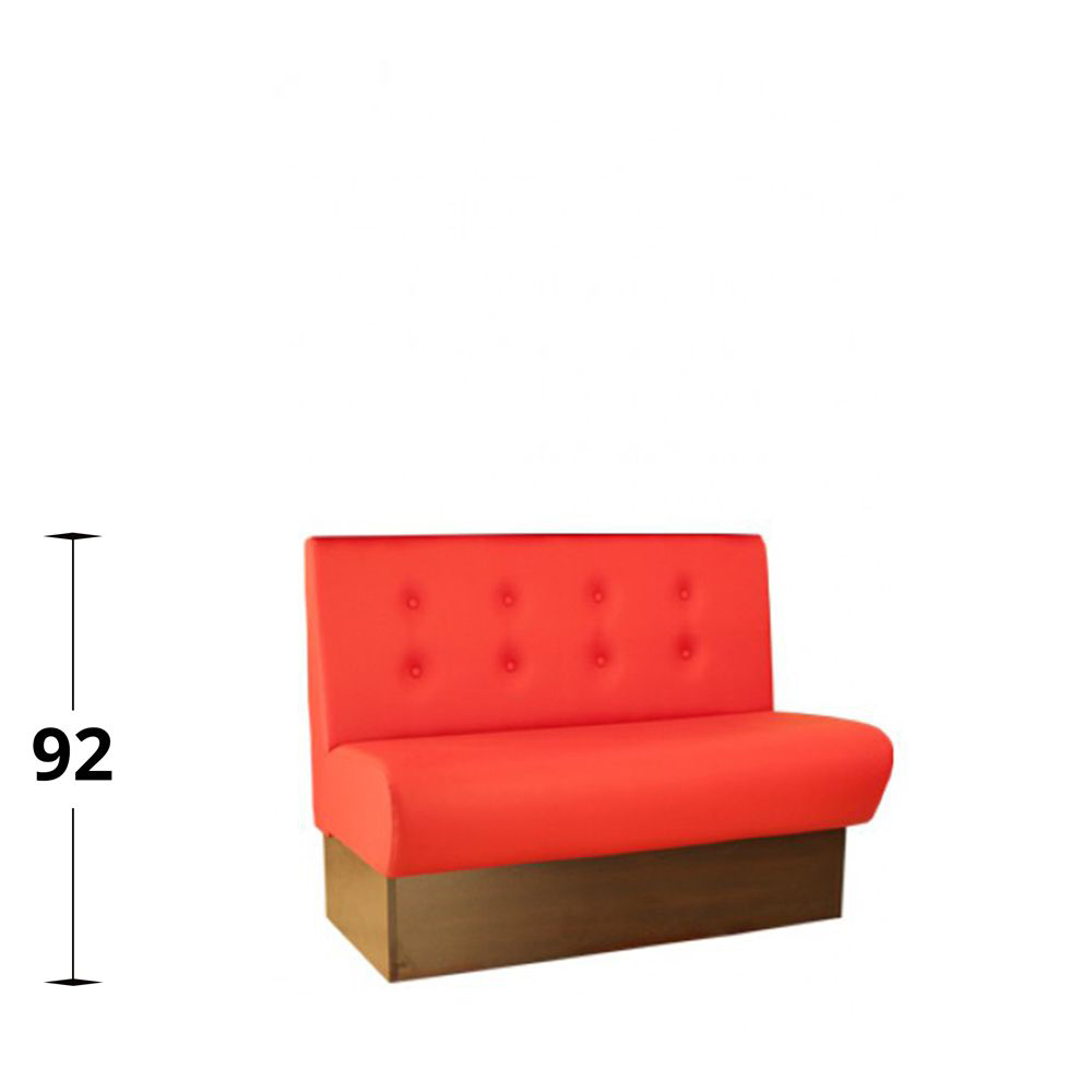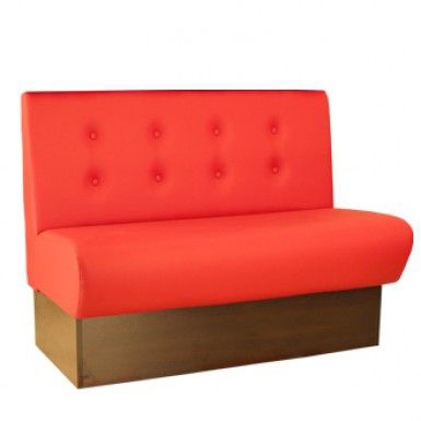 Eine Polsterbank mit flachen Rücken und Sockel, diese Loungebank ist für die Gastronomie geeignet. - Der Rücken der Bank ist mit Spannstoff bezogen. Gegen Aufpreis erhalten Sie den Rücken auch in Ihrem gewünschten Bezugsmaterial.