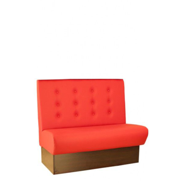 Eine Polsterbank mit flachen Rücken und Sockel, diese Loungebank ist für die Gastronomie geeignet. - Der Rücken der Bank ist mit Spannstoff bezogen. Gegen Aufpreis erhalten Sie den Rücken auch in Ihrem gewünschten Bezugsmaterial.