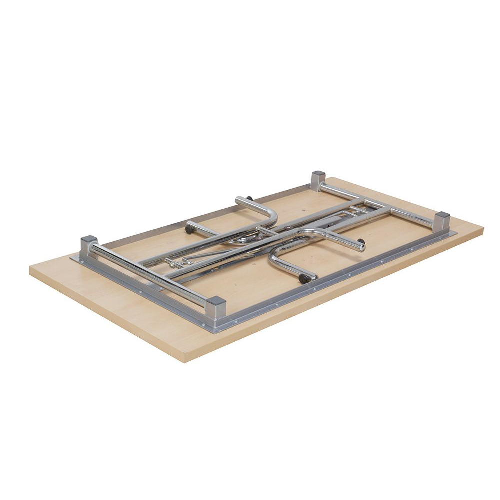- Klapptischgestell: Doppel-T-Rundrohr Ø 30mm verchromt oder hammerschlag mit stabilisierendem Zusatzrahmen