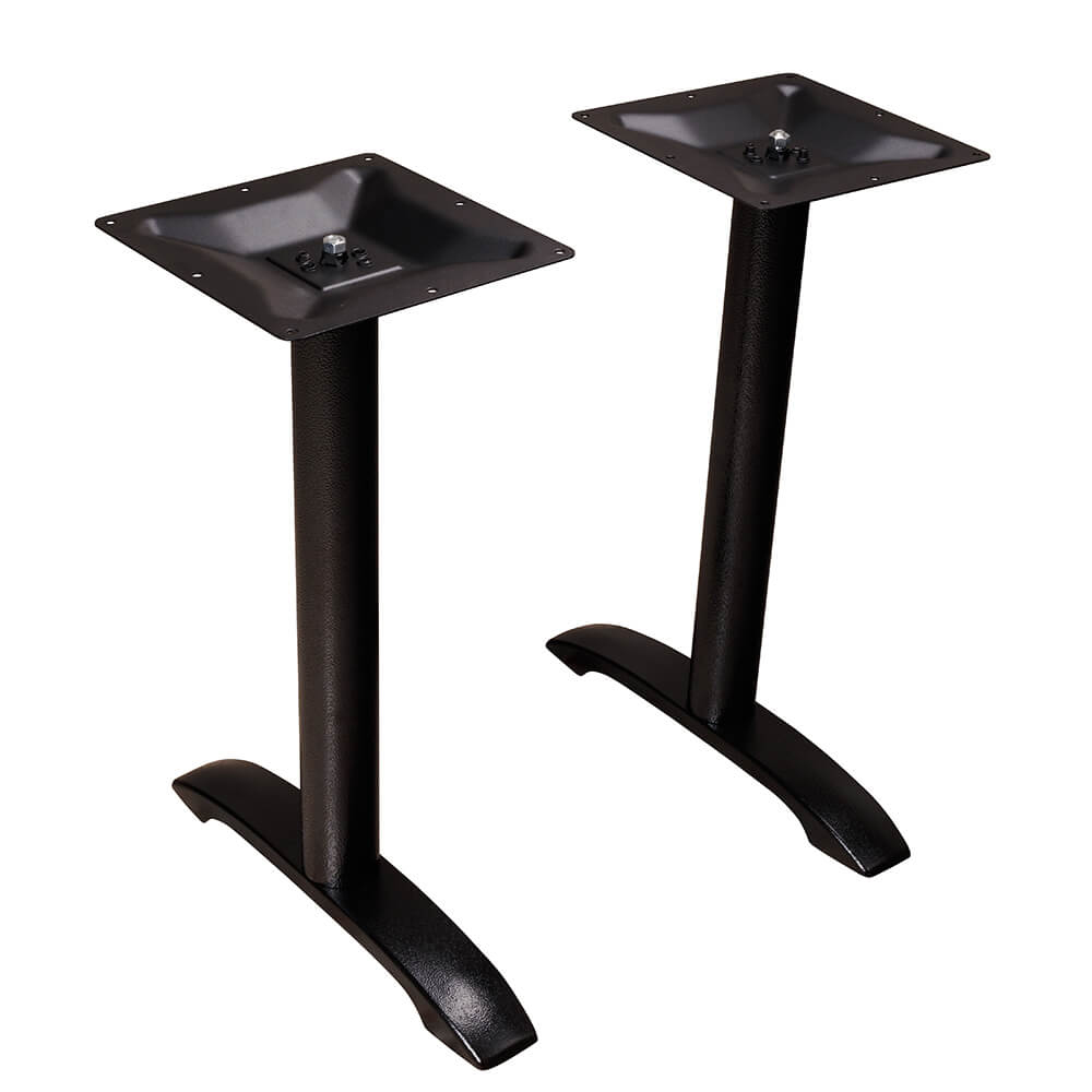 Kostengünstiges Tischgestell aus stabilem Gusseisen für den Innenbereich. Es besteht aus zwei Teilen. Durch die dunkle Farbe fallen Flecken und Putzschlieren weniger auf.